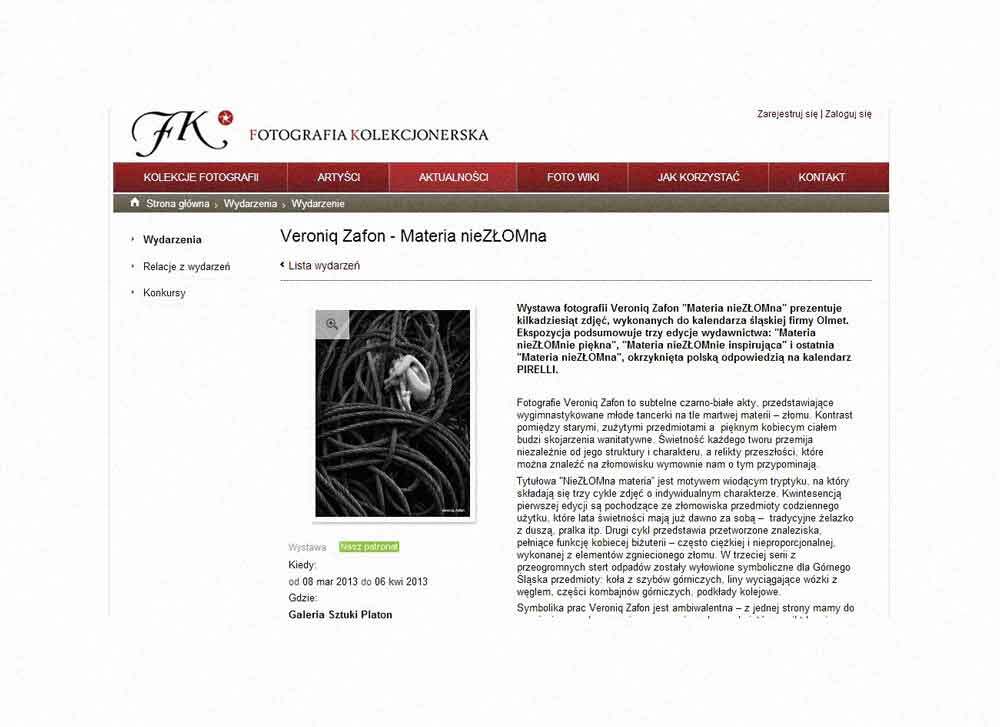 edycje wydawnictwa: Materia nieZŁOMnie piękna, Materia nieZŁOMnie inspirująca i ostatnia Materia nieZŁOMna, okrzyknięta polską odpowiedzią na kalendarz PIRELLI. Fotografie Veroniq Zafon to subtelne czarno-białe akty, przedstawiające wygimnastykowane młode tancerki